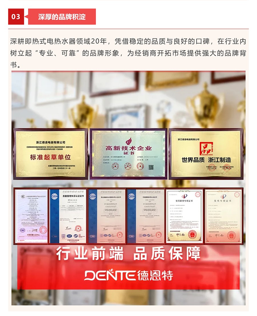 德恩特品牌旗下涵蓋即熱式電熱水器,速熱式電熱水器,快熱式電熱水器品牌和凈水機(jī)等